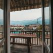 Comodo balcone con tavolo e sedie